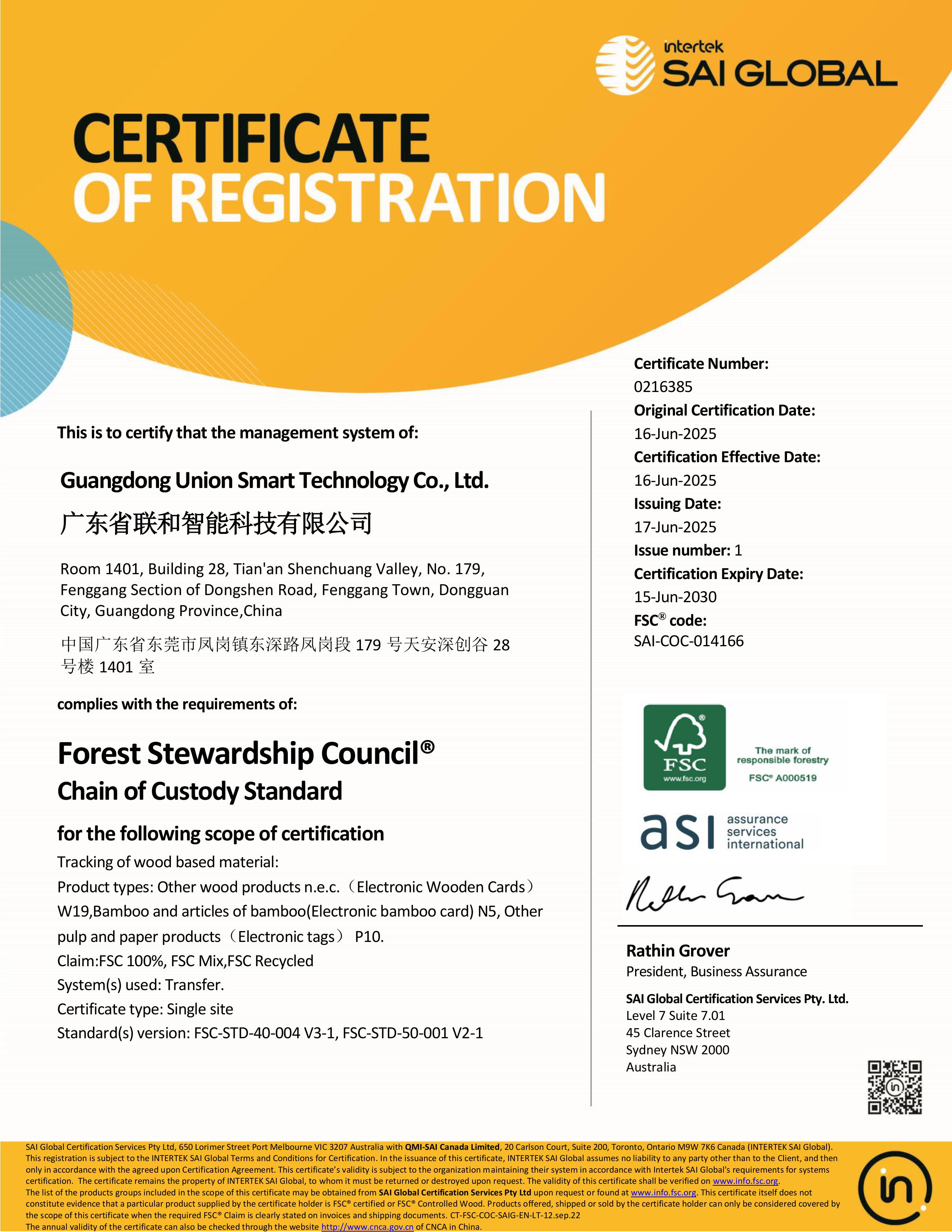 获得IATF 16969汽车行业标准体系认证以及FSC环保认证